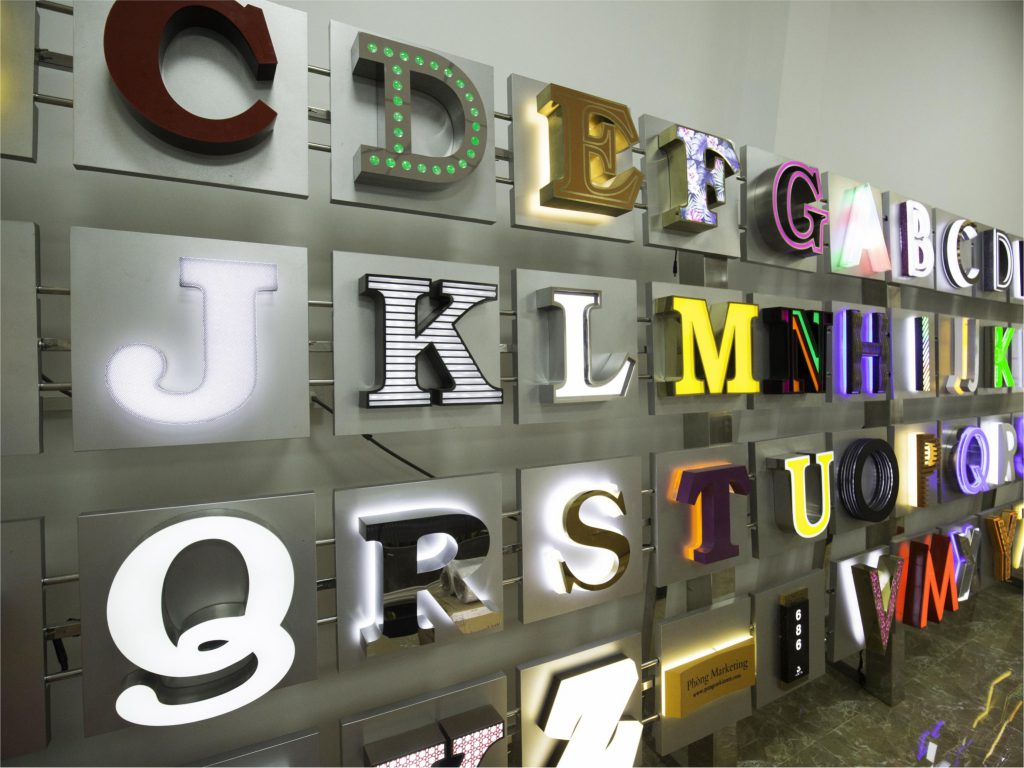 Đặc điểm: Đây là lựa chọn tối ưu cho sự nổi bật. Phần viền chữ được làm bằng inox sắc sảo, bề mặt được làm bằng mica cao cấp cho phép ánh sáng LED từ bên trong tỏa ra rực rỡ.